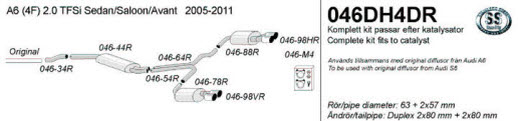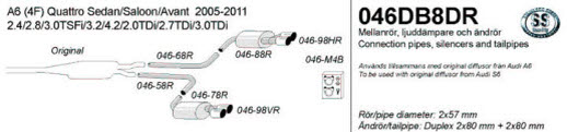 Simons RVS Sportuitlaat systeem voor de Audi A6 2.0TFSi van bouwjaar 2005 t/m 2011 met voorwiel-aandrijving van het type 4F. Geschikt voor de A6 Sedan en Avant.